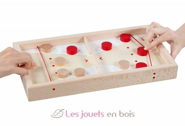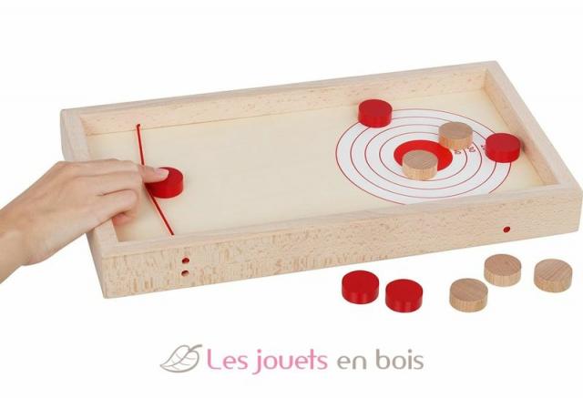 Teilen Sie einen freundlichen Moment mit Familie oder Freunden mit diesem 2-in-1-Tischbrettspiel! Das goki Puck-Spielbrett beinhaltet zwei spannende Spiele, die durch einfaches Wenden des Spielbretts schnell aufgebaut sind. Bei Super-Puck versuchen 2 Spieler, ihre Pucks so schnell wie möglich auf die gegnerische Seite zu schießen. Beim Puck-Curling geht es etwas ruhiger, aber nicht weniger spannend zu – mit beliebig vielen Spielern gilt es, Ziele zu treffen und Punkte zu sammeln. Beide Spiele fördern die Hand-Auge-Koordination und das Konzentrationsvermögen. Super-Puck Brettspiel 2 in 1, Geschicklichkeitsspiel aus Holz von Goki.