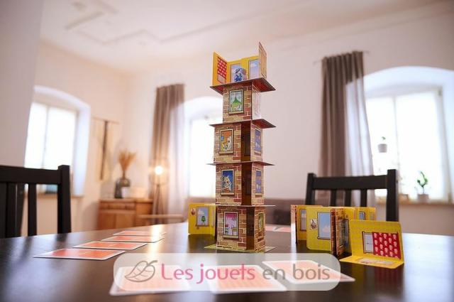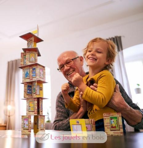 Ein heldenhaftes 3-D-Stapelspiel für 2 – 5 Superhelden von 5 – 99 Jahren.Rhino Hero ist wieder unterwegs. Der tierische Superheld erklimmt furchtlos die höchsten Häuser und hält nach Gaunern und Schurken Ausschau. Er ist stark wie ein Löwe und schlau wie ein Fuchs, aber auch schwer wie ein Nashorn. Das bringt selbst die stärksten Hochhäuser ins Wanken. Könnt ihr Rhino Hero helfen, seine wacklige Mission zu erfüllen, und den Wolkenkratzer stabil nach oben bauen Das spannende 3-D-Stapelspiel von Haba erfordert eine ruhige Hand und auch etwas Geschick, denn je höher das Hochhaus wird, desto wackeliger wird der Stapelspaß. Einfache Regeln ermöglichen schnellen Spielspaß für die ganze Familie.Inhalt: 1 Rhino Hero aus Holz, 31 Dachkarten, 28 Wandkarten, 1 Fundament, 1 Spielanleitung. Rhino Hero, Stapelspiel der Marke Haba. Ref. 302203.