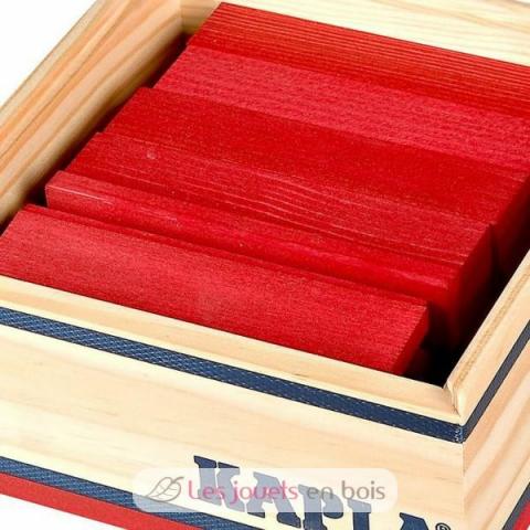 Kapla – Die berühmte 40 roten Plättchen aus naturbelassenem erstklassigem Pinienholz von den Landes (von verwalteten Wäldern stammt) sind 12 cm lang. Kapla 40er Quadrat erlaubt dem Kind, entweder, diesen Baukasten zu entdecken, oder den Barrel 100 naturbelassene Holzplättchen zu ergänzen. Die Plättchen sind in einer Holzkiste mit transparentem Fenster geliefert, sehr praktisch für das Aufräumen. Altersempfehlung : 3 Jahre.