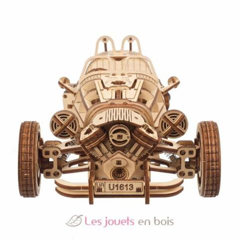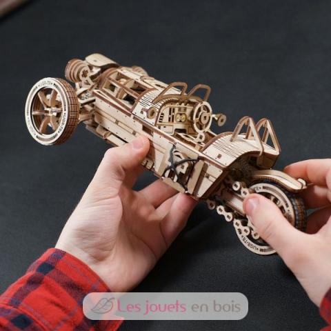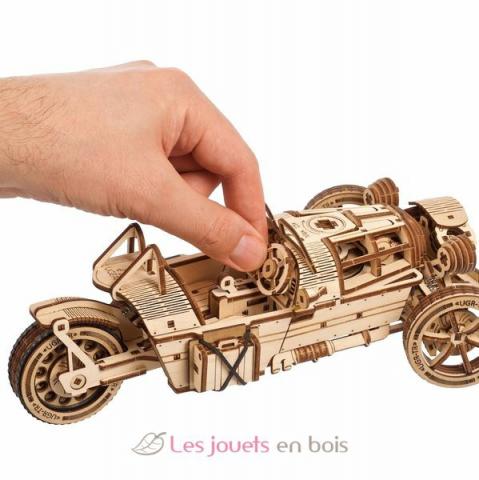 Dreiradfahrzeug UGR-S, 3D-Holzpuzzle mit Selbstantrieb von Ugears. Holzmodell zum Selbstzusammenbau, ohne Kleber. Montagezeit: 8 Stunden. Material: Sperrholz. Stückzahl: 457 Stück. Abmessungen: 26,2 x 9 x 14 cm. Maßstab 1:12. Hergestellt in der Ukraine. Alter: 14+.